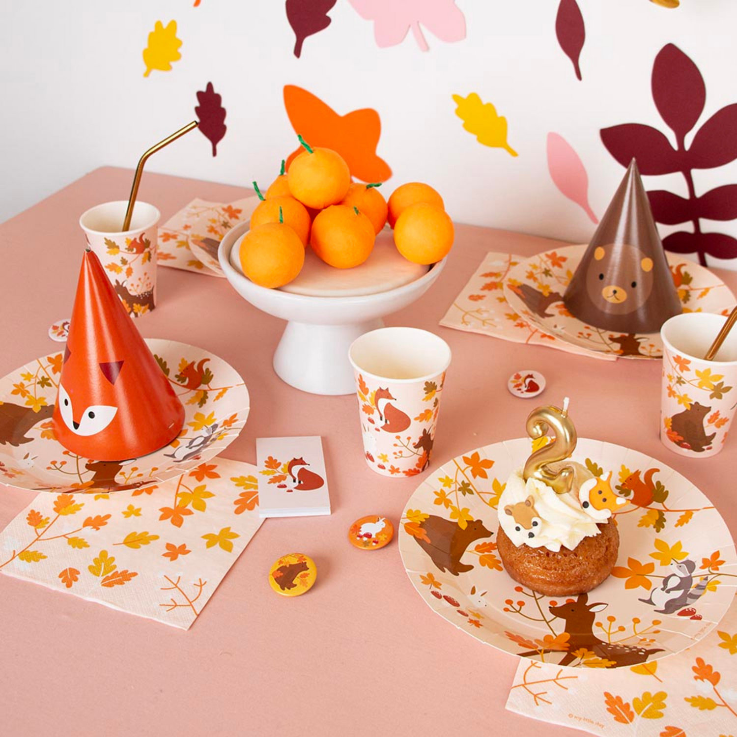 Samen met vos, beer, haas en alle andere bosdieren organiseer je een feestelijk woodland feestje. Prachtige bordjes en servetten in de vorm van paddenstoelen zorgen meteen voor een feestelijk bostafereel. Beleef met jouw kleine kabouters een geweldig feest! 🍄🦊🍁