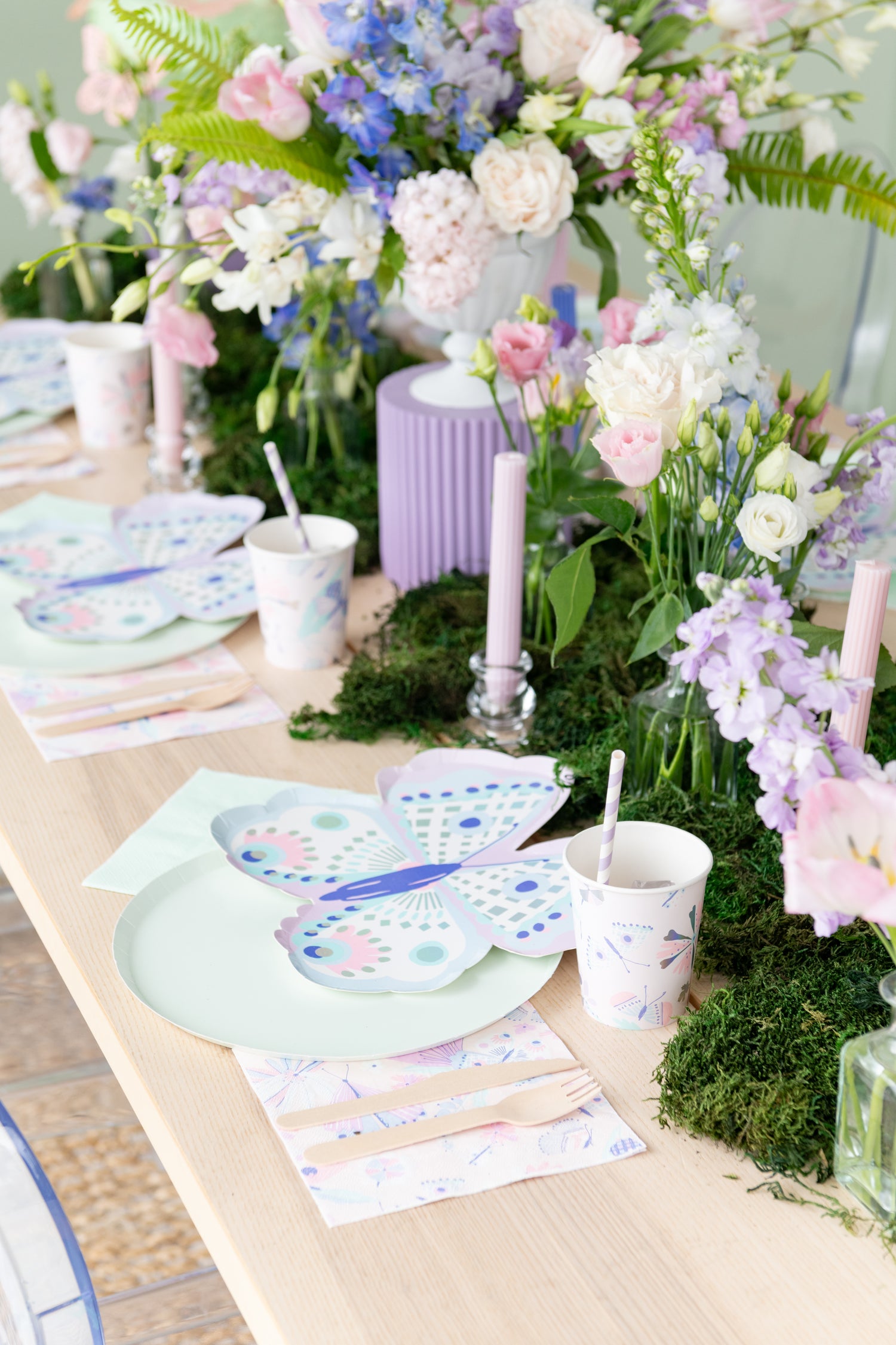 Voor alle liefhebbers van fleurige feesten is er deze wonderlijke collectie met vlinders. Tover de feestruimte om in een magische vlindertuin met deze elegante en speelse versieringen. Van bordjes in de vorm van vlinders tot servetten in prachtige paars- en lilatinten, deze collectie maakt van elke feesttafel iets wonderlijk. Laat je inspireren door de pastelkleurige pracht en fladder mee in een wereld vol magie en plezier! 🦋💜